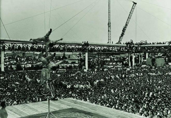 上世纪70年代,沈阳杂技团表演的《高台定车》