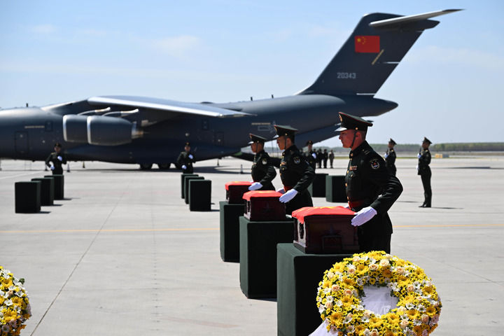 专机护航伴飞、“过水门”礼遇致敬,机场肃穆迎接、陵园隆重安葬;礼兵手捧覆盖五星红旗的棺椁缓步前行,沿途民众自发伫立、含泪相迎……每一次迎回都是国家行动,每一场仪式都是最高敬意。