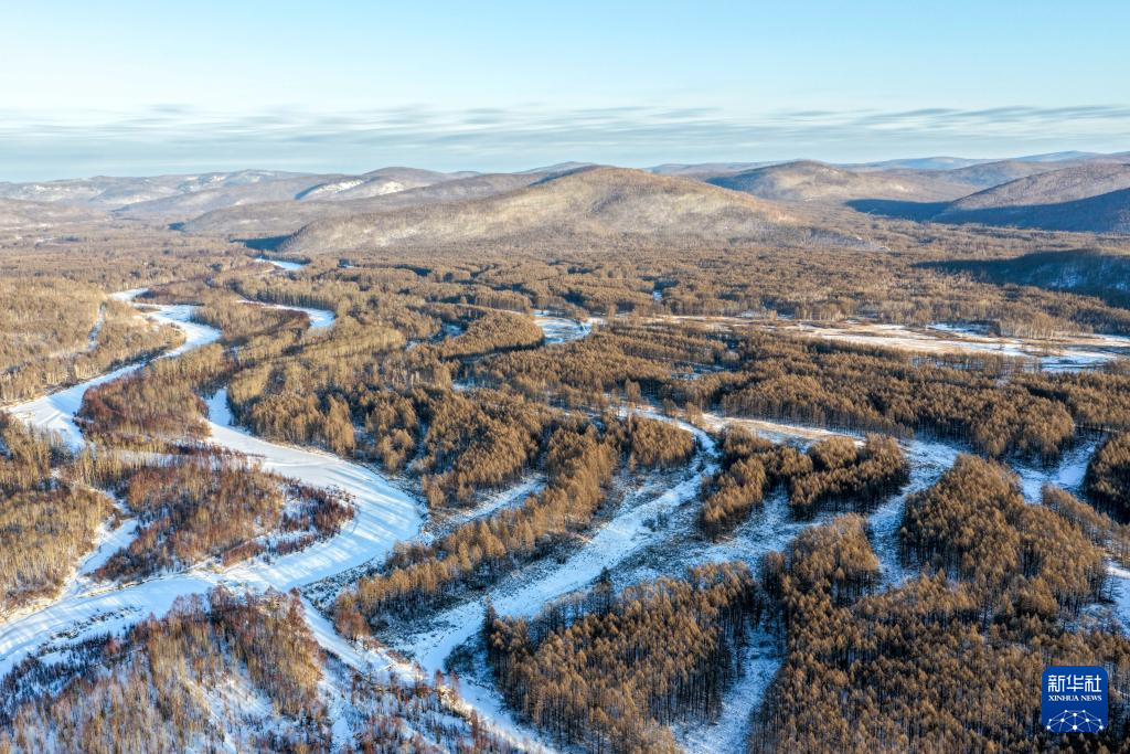这是1月15日在根河市拍摄的冰封的根河(无人机照片)。
