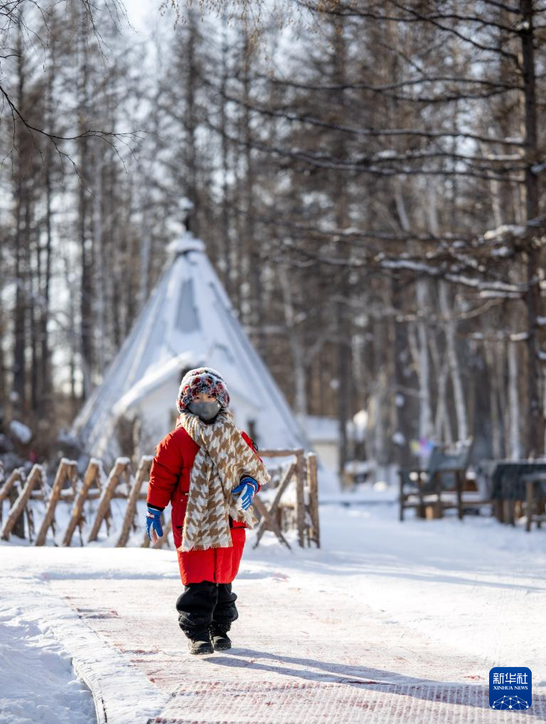 1月15日,一名小游客在根河市敖鲁古雅鄂温克民族乡游玩。