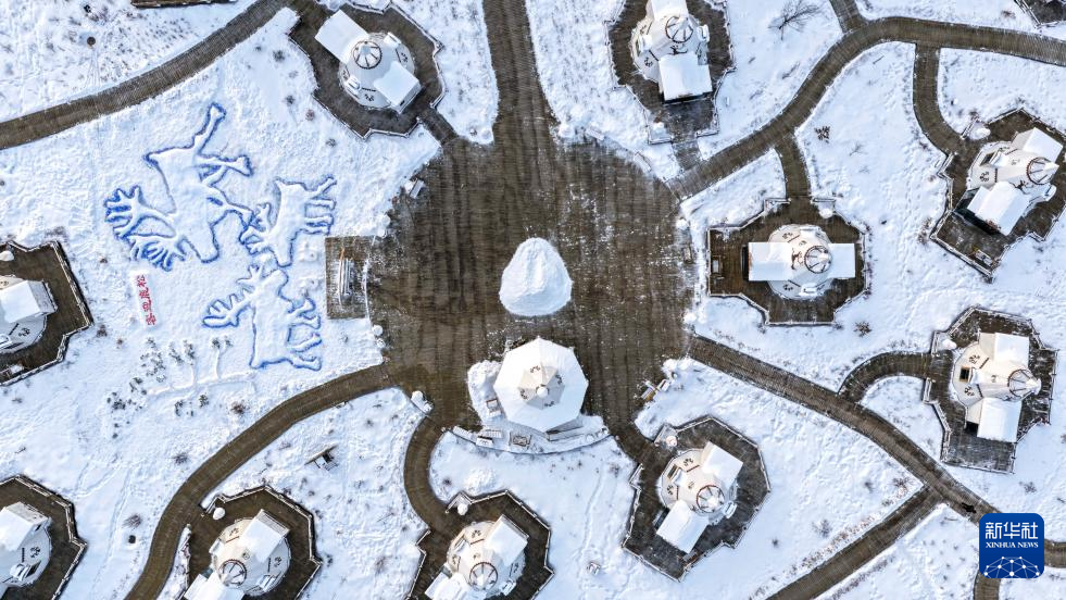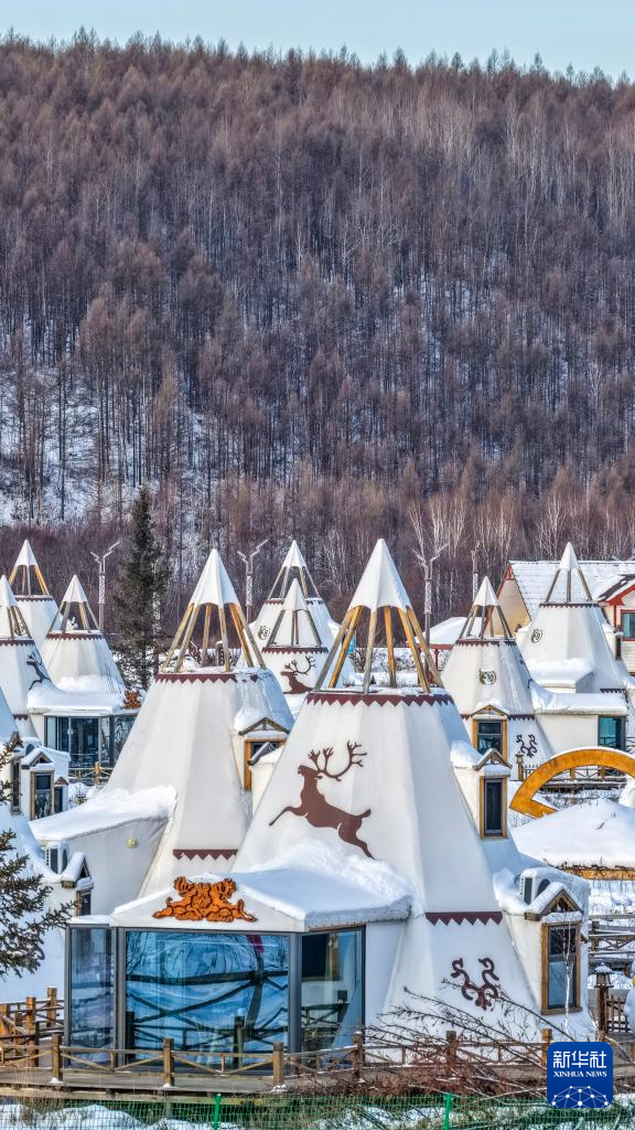 这是1月15日在根河市敖鲁古雅鄂温克民族乡拍摄的鄂温克族传统民居撮罗子(无人机照片)。