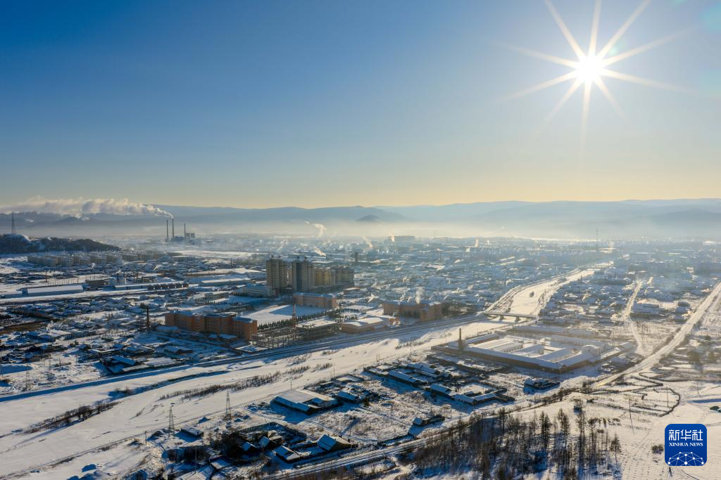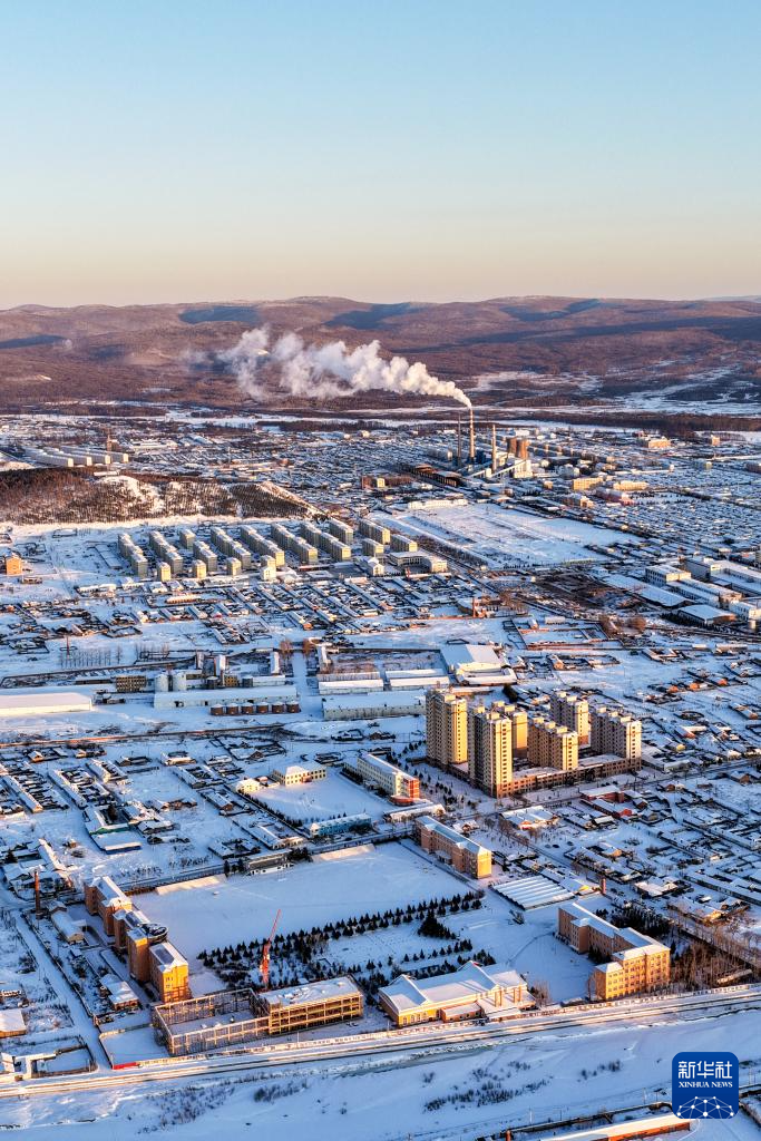 这是1月14日拍摄的根河市城区景色(无人机照片)。