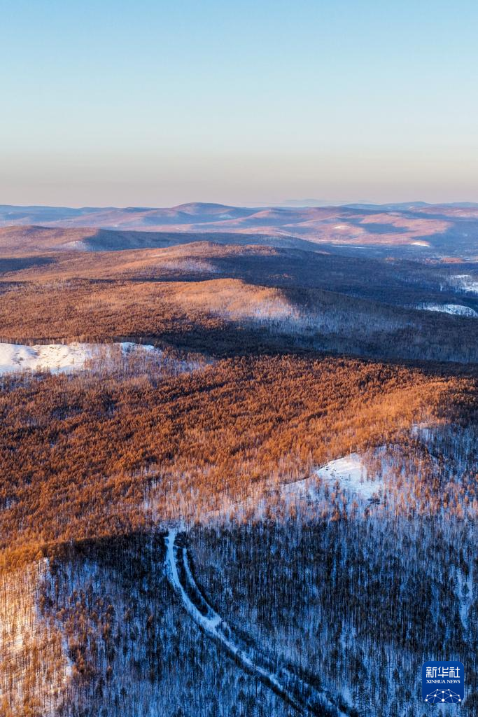 这是1月14日拍摄的根河市城郊的森林(无人机照片)。