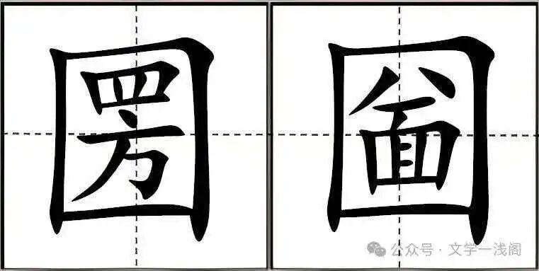 回到字形本身:一个大“口”字框,内部恰好嵌进“四+方+八+面”八个构件——这不仅是“围起来”的象意,更是一幅微缩的“数字地理”图:“四方”锁定东、西、南、北;“八面”兼及东北、东南、西南、西北——两字合二为一,便把“八荒”纳入一口之内。一幅微缩地图,用一道界限,把无垠的四方八面包围起来,形成一个独立、完整、可控的“小宇宙”。