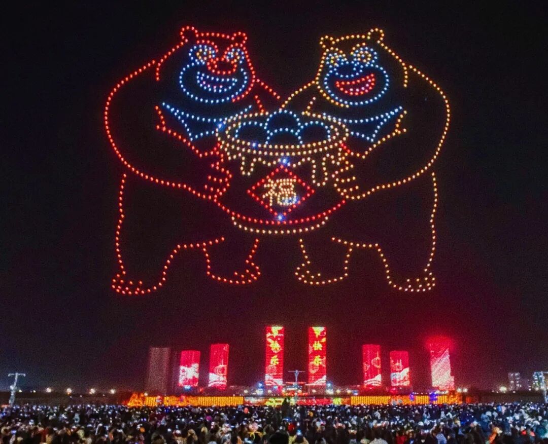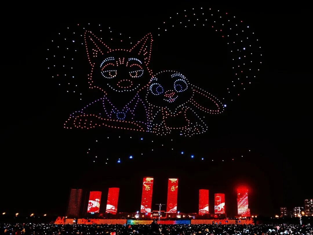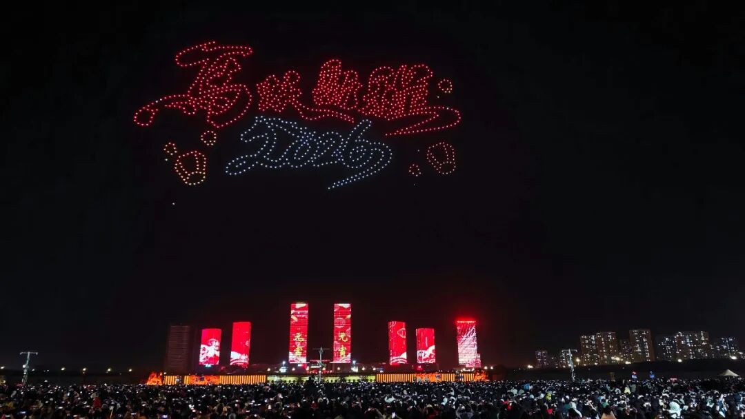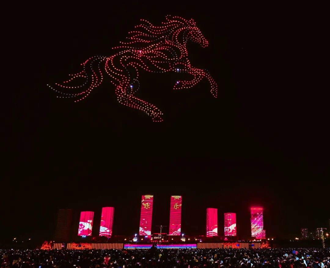 夜幕低垂,一千架无人机腾空而起,在智能系统的精准调度下,变幻出“马跃新程2026”“元宵喜乐”等字样,以及经典卡通形象和齐天大圣驾祥云等动态图案,引得现场观众阵阵惊叹。无人机编队以夜空为画布,以光影为笔墨,勾勒出一幅幅流动的画卷,将科技之美与节日温情完美融合。
