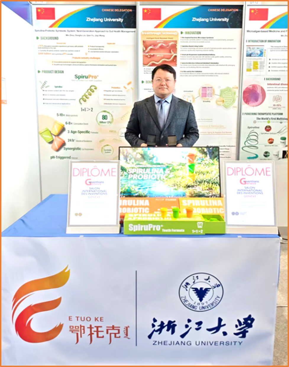 近日,第51届日内瓦国际发明展结果公布,浙江大学-鄂尔多斯市鄂托克旗生物医药联合研究中心主任周民教授团队 参展的两个项目分别荣获金奖、银奖。其中,纳米螺旋藻-药食同源项目“微藻药食同源产品用于胃肠道调理及治疗”荣获金奖;螺旋藻复合益生菌项目“螺旋藻益生菌-健康管理新一代技术”斩获银奖。