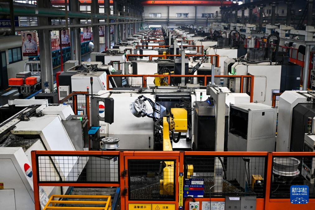 这是4月1日拍摄的包头盛泰汽车零部件制造有限公司铝合金轮毂生产线。