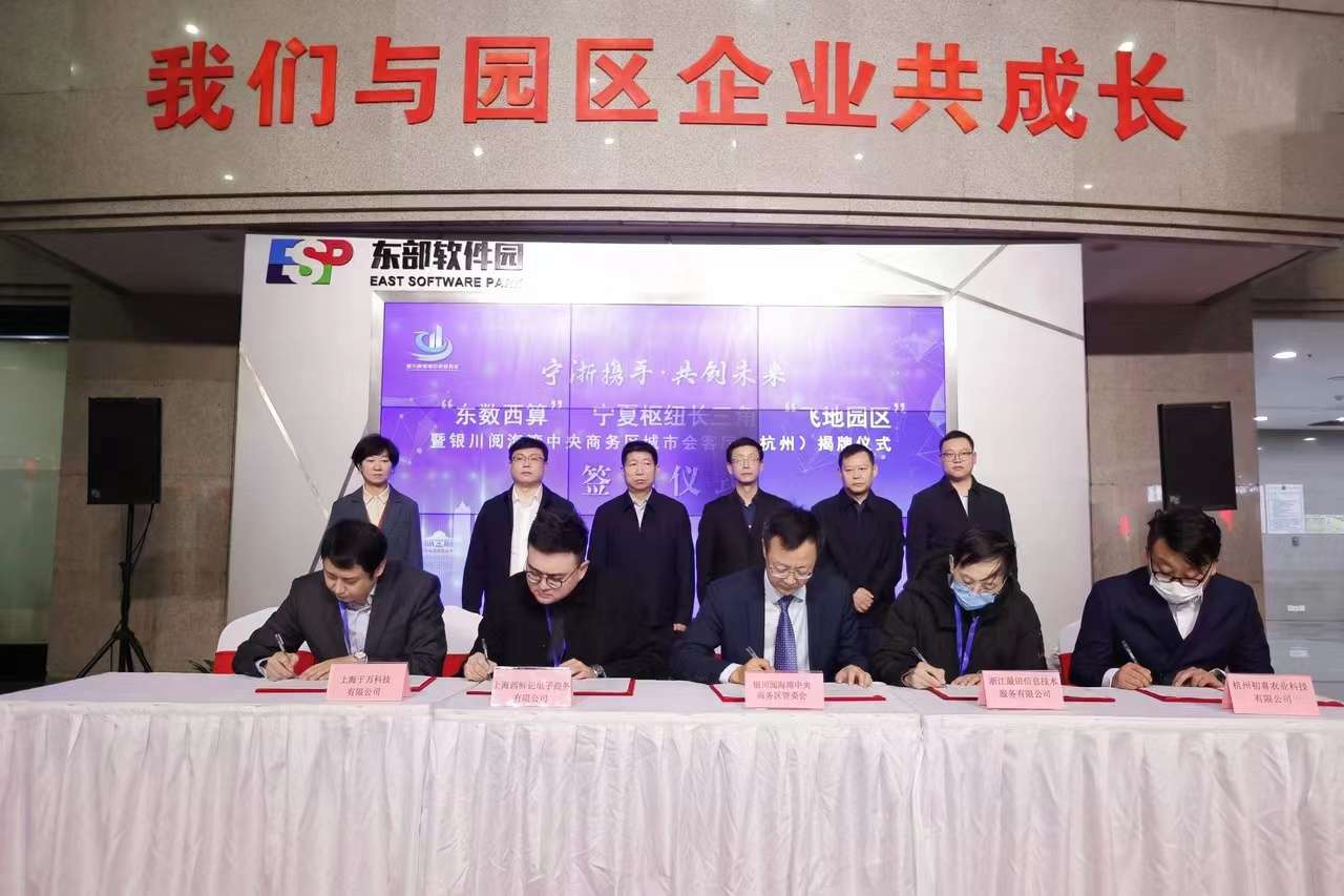 2月9日,宁夏银川阅海湾商务区管委会在杭州举办以“宁浙携手共创未来”为主题的“东数西算”宁夏枢纽“飞地园区”暨城市会客厅(杭州)揭牌仪式。活动深入贯彻落实自治区第十三次党代会部署,全力推动全国一体化算力网络宁夏枢纽节点建设和“东数西算”工程,进一步扩大宁夏枢纽在长三角地区的影响力,加快银川阅海湾商务区数字经济示范园区建设步伐。宁浙两省政府部门以及来自杭州、上海、江苏、宁夏等地的70余家东数西算、数字经济领域企业代表和嘉宾参加此次活动。