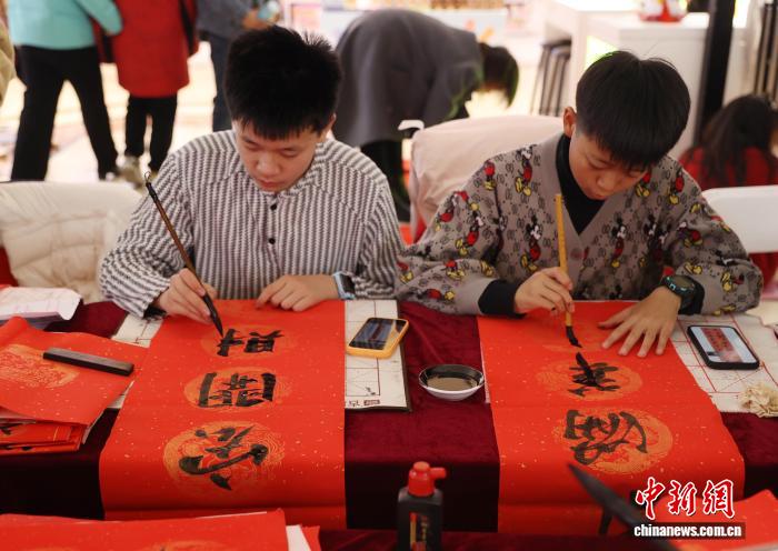 图为小朋友写春联。中新社记者 于晶 摄