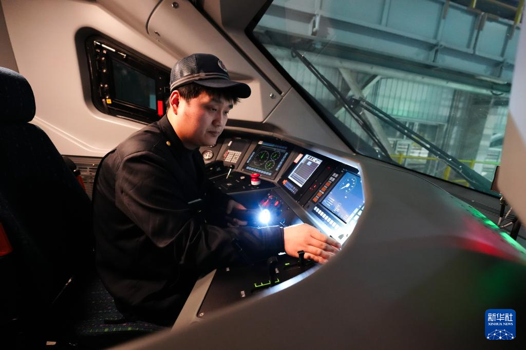 1月27日,中国铁路青藏集团有限公司西宁车辆段动车运用车间工作人员葛少康在检查司机室操作台。