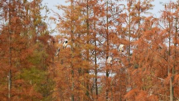 四川成都:成群鹭鸟栖息水杉林