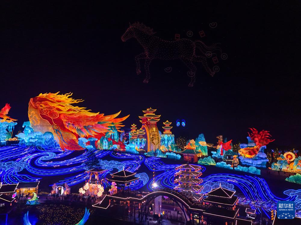 这是1月23日在四川省自贡市中华彩灯大世界拍摄的“神奇华夏”主题灯组(无人机照片)。