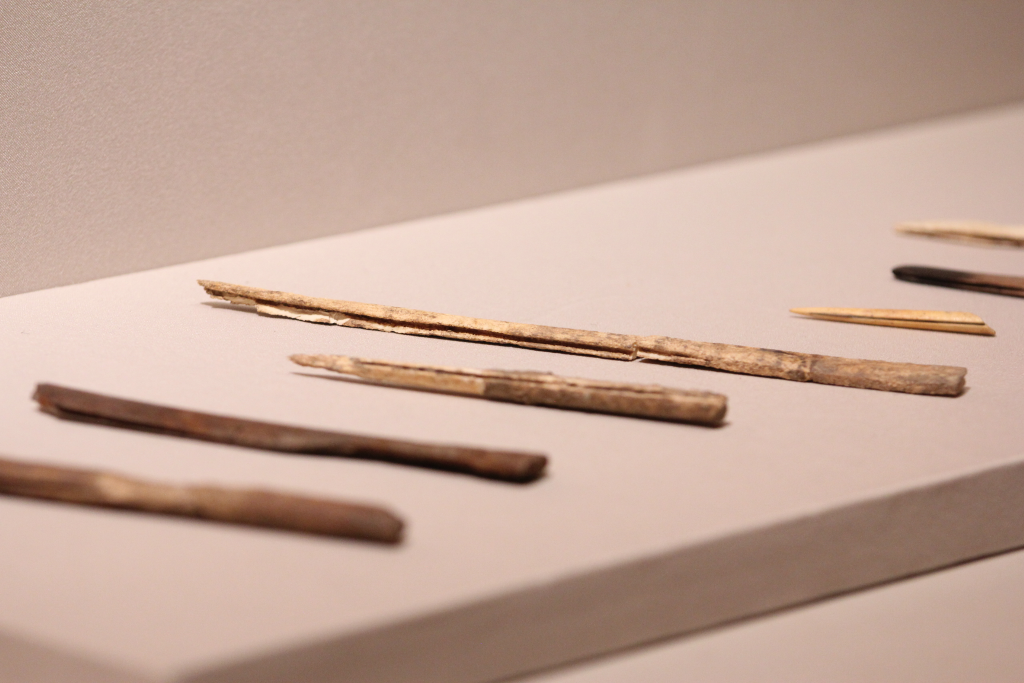 新石器时代的骨梗石刃刀。新华社发