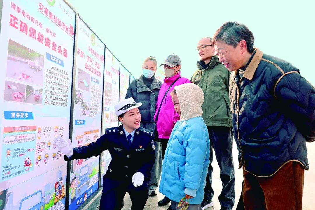2025年,省人大监察司法委推动修改实施道路交通安全法办法,力促全省道路交通安全水平持续提升。图为枣庄市公安局交通管理支队民警向群众宣传道路交通安全知识。(孙中喆/摄)