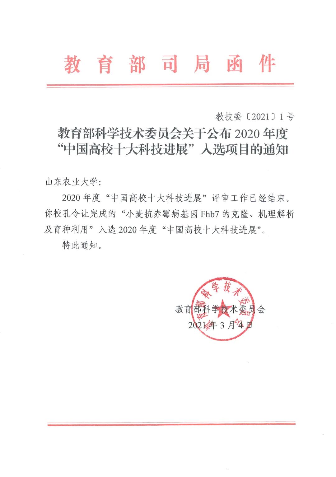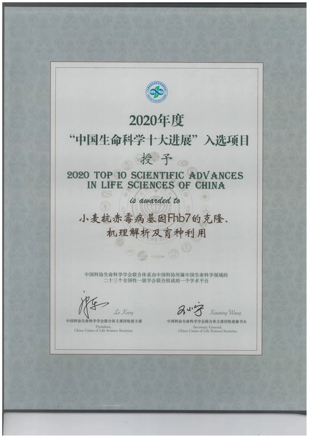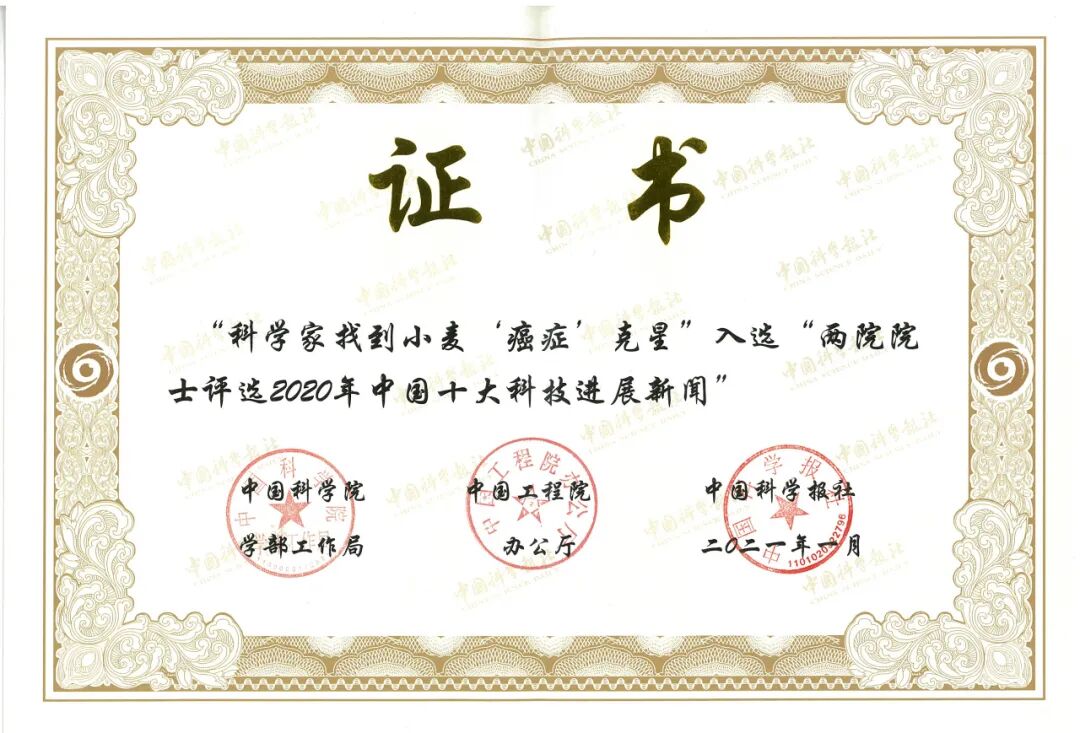 该成果作为封面文章2020年发表于《科学》,先后入选中国十大科技进展新闻、中国生命科学十大进展,获评近十年我国农业科技的30个标志性成就,中国工程院院士康振生、美国科学院院士邓兴旺对该研究给予高度评价。该成果荣获2023年度山东省自然科学奖一等奖。