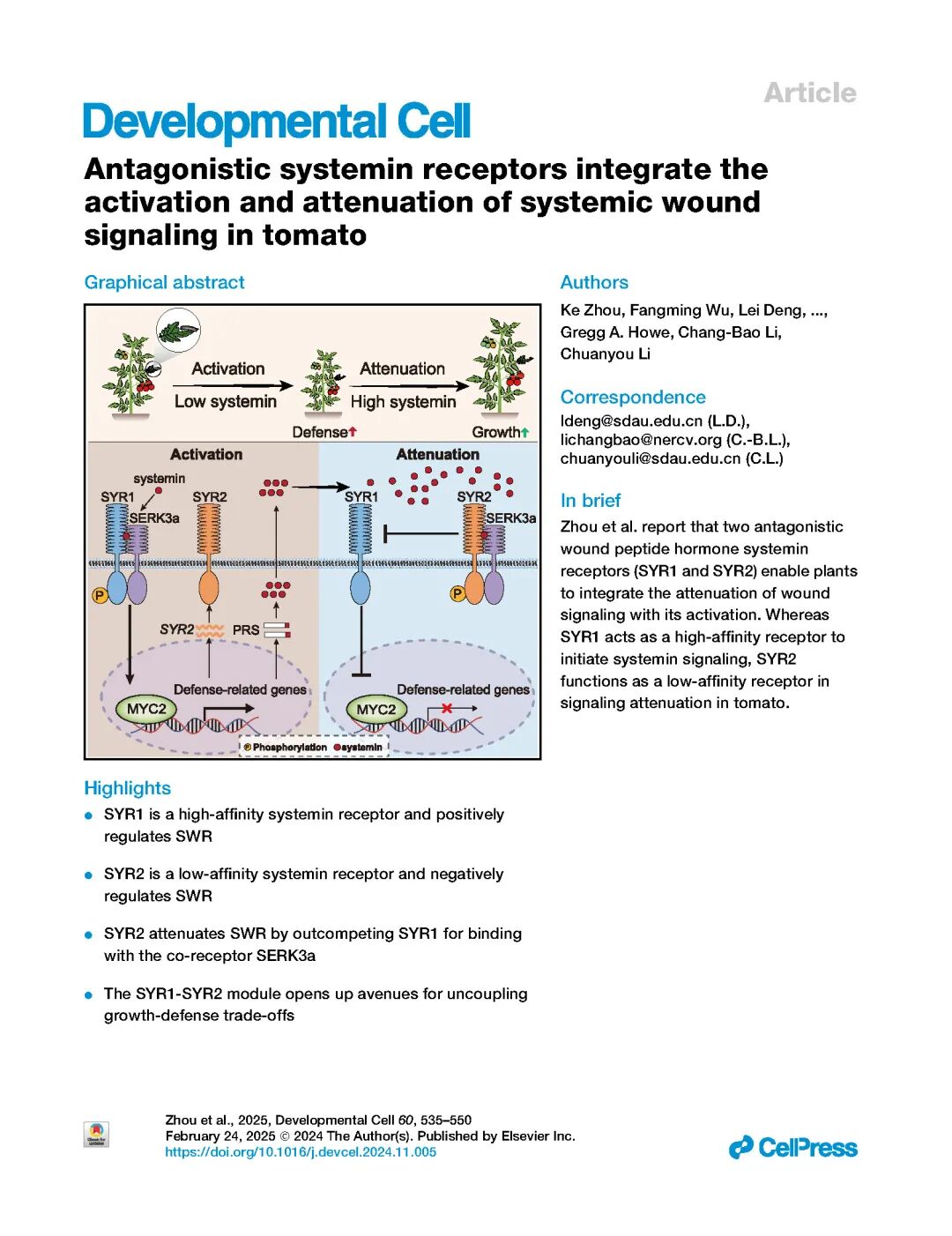 系统素调控植物免疫稳态成果发表在Developmental Cell