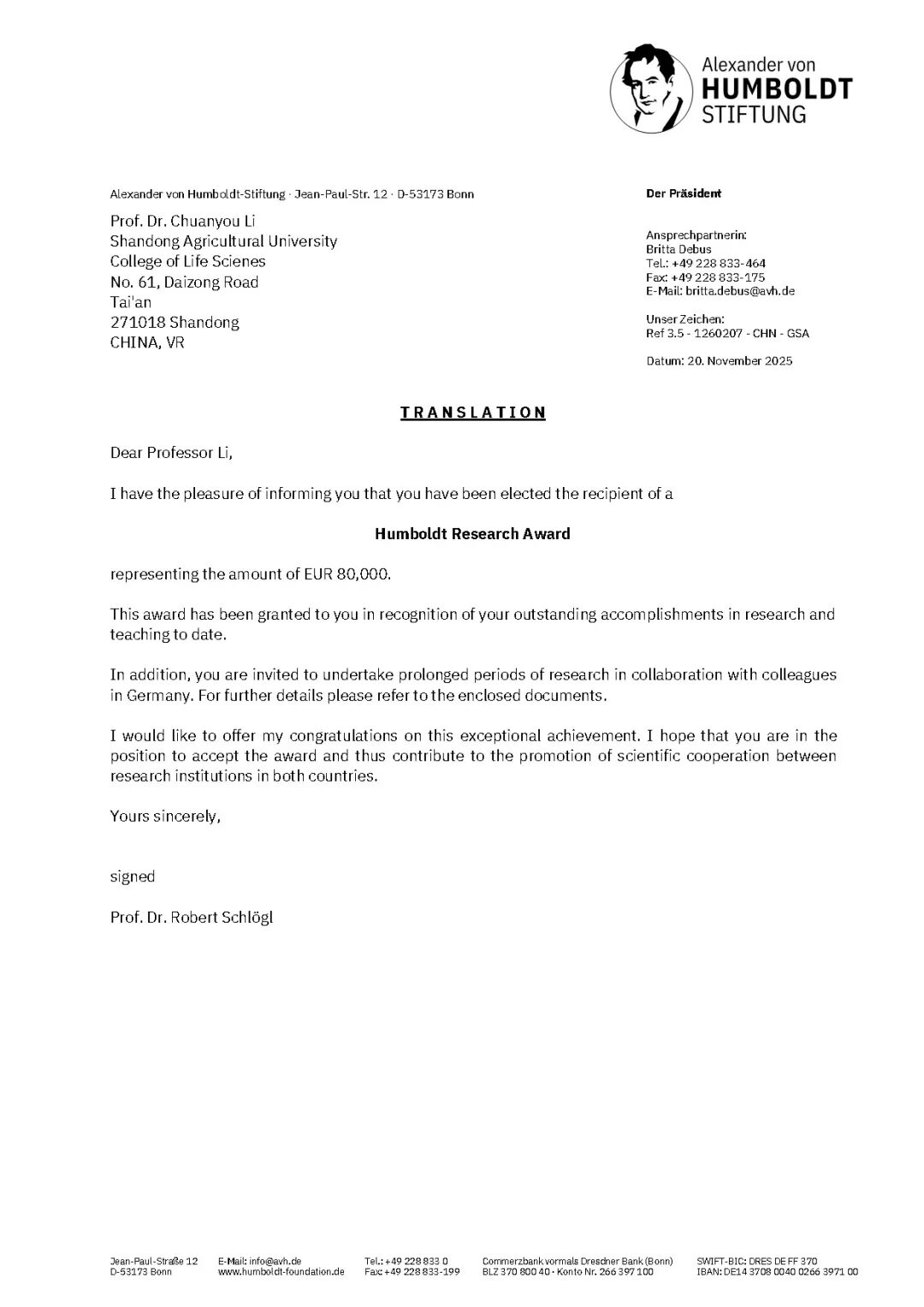 该成果2024年发表于《细胞》,中国科学院院士许智宏、种康和奥地利科学院院士Ji í Friml等对该研究给予高度评价。成果第一完成人李传友获洪堡研究奖。