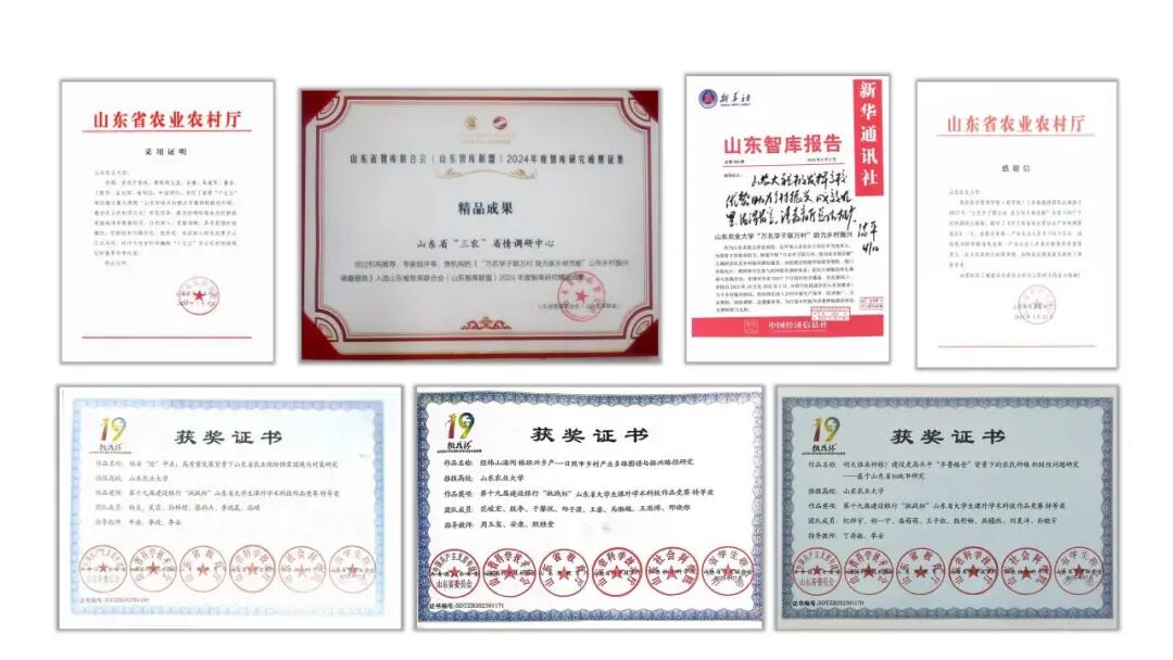 为全面服务乡村振兴齐鲁样板打造,学校开展“万名学子联万村我为家乡做贡献”大调研,万余名师生深入乡村一线,对山东省55077个行政村的全覆盖调查模式,全面构建全省乡村振兴多维度数据库,最终形成“1+5+1”系列山东省乡村振兴发展报告。报告内容涵盖乡村振兴五个方面重点任务,突出山东重点和特色,为“三农”研究提供了大规模、高精度的实证支撑,为打造乡村振兴齐鲁样板提供了扎实的决策依据。成果多次获省部级领导肯定性批示、农业农村厅高度肯定,获评智库研究精品成果奖,部分建议被直接纳入相关政策,充分发挥了高校智库主动服务国家重大战略和地方经济社会发展的决策咨询能力。