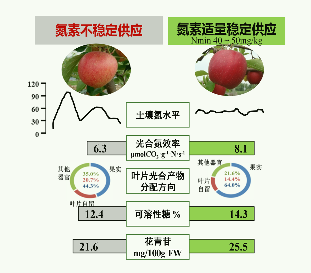 苹果园化肥施用过量不仅造成果实品质下降、肥料利用率低,而且带来环境污染等系列问题。该成果针对我国苹果园化肥施用过量这一制约产业绿色发展的瓶颈问题,历经15年,阐明了根层养分适量稳定供应协同实现养分高效与优质丰产的机制,发明了局部优化根层施肥、总量控制追肥后移等施肥新方法,创制了实现根层氮素稳定供应的系列肥料和装备,集成了“一稳二调三优化”苹果化肥减量提质增效绿色生产技术,实现减氮26.8%,增产6.6%,优质果率提升7.4%,在山东、陕西等地推广应用659万亩,有力推动了苹果绿色施肥技术进步。