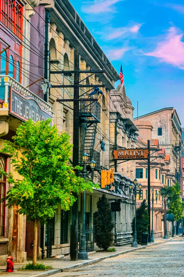悬疑探案剧《唐探1900》也在此取景,深巷重楼间,自带悬疑交错的故事感,为这座影城增添了几分神秘色彩。