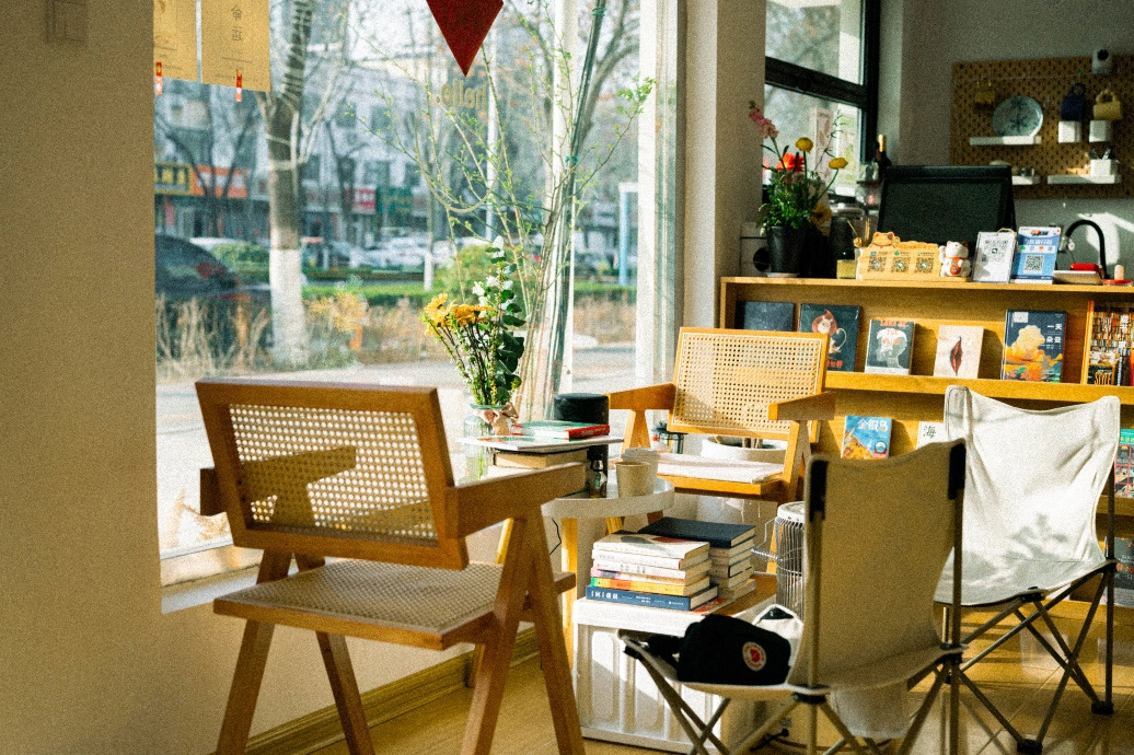 识光书店暖黄灯光透过玻璃橱窗晕染开来,木质书架与复古吊灯相映成趣,浓郁的文艺气息扑面而来。