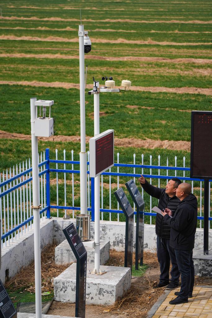 2025年3月14日,工作人员在山东省乐陵市高标准农田示范区智能农田技术服务站查看农情监测数据。新华社发 (贾鹏摄)