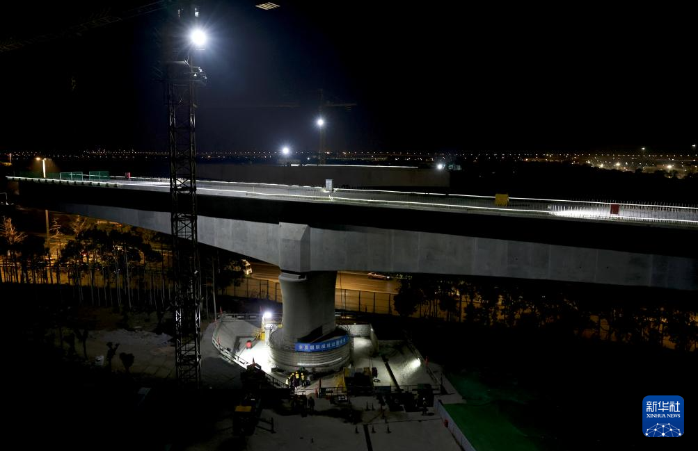 1月8日拍摄的正在进行转体的川沙特大桥跨磁悬浮连续梁。