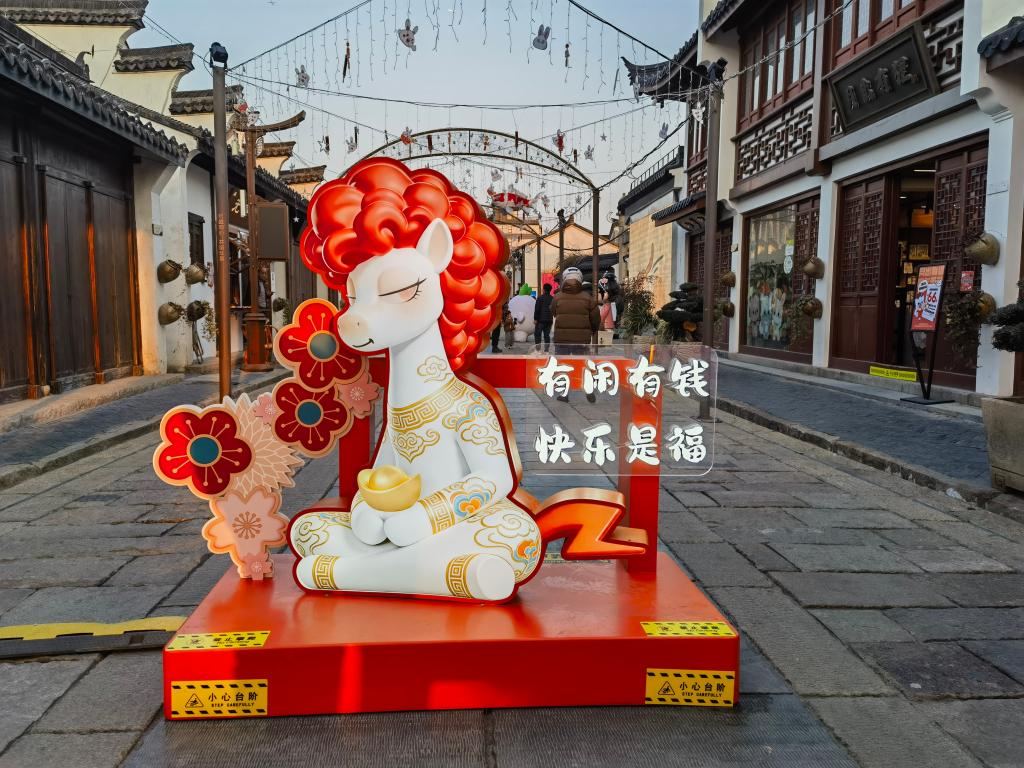 这是设在泗泾古镇主街上的时尚打卡装置。新华社记者 陈爱平摄