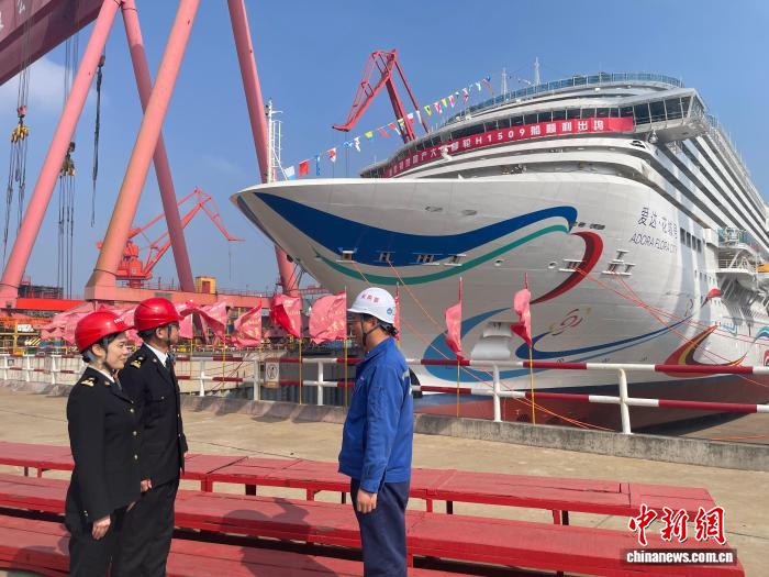 中新网上海3月18日电 (记者姜煜)第二艘国产大型邮轮“爱达·花城号”将于3月中旬出坞,并计划于2026年10月交船。上海海关推出专属服务、建立高效响应机制,“护航”国产邮轮建造。