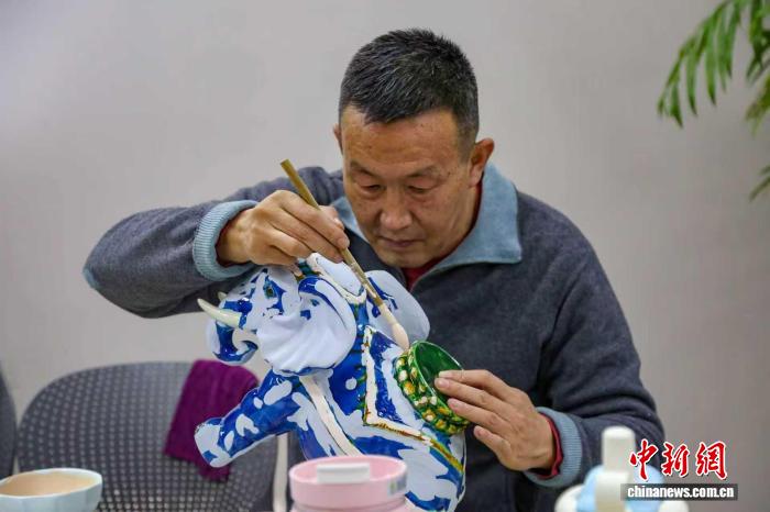 如今,解兴明门下已有20余名学徒,年轻一代为这项古老技艺注入了新活力。他鼓励年轻徒弟大胆创新,在色调和形态上大胆发挥想象力。临近新年,团队仿照木版年画创新设计的琉璃门神冰箱贴,成了畅销的“网红产品”。