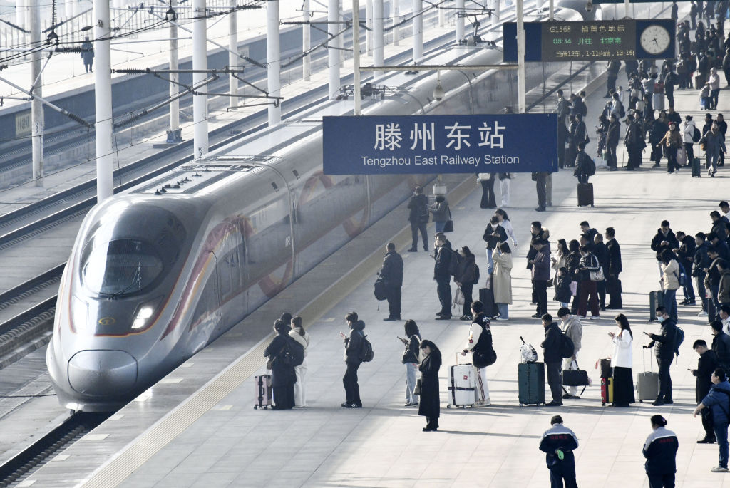 3月13日,旅客在山东省枣庄市滕州东站乘车出行。新华社发(李宗宪摄)