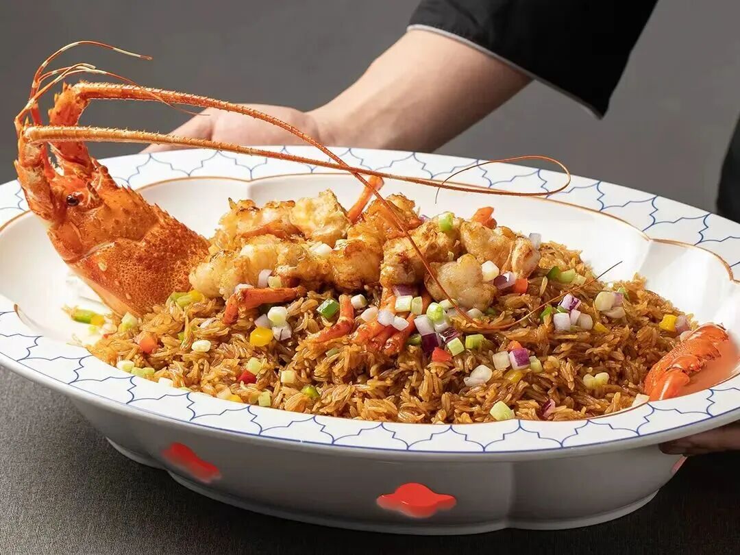 熊猫米炒龙虾仔是店里的招牌之一,米粒分明且吸满了龙虾的鲜甜,颜值与味道双在线。
