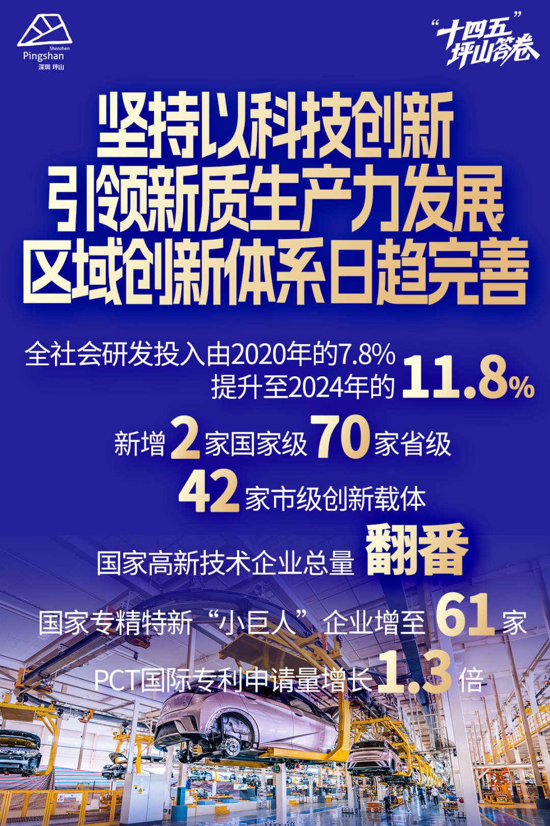 这五年,坪山对全市发展的贡献度日益提升,在全社会的显示度持续扩大,坪山产业体系持续向新提质、向优升级,实体经济根基更加巩固。