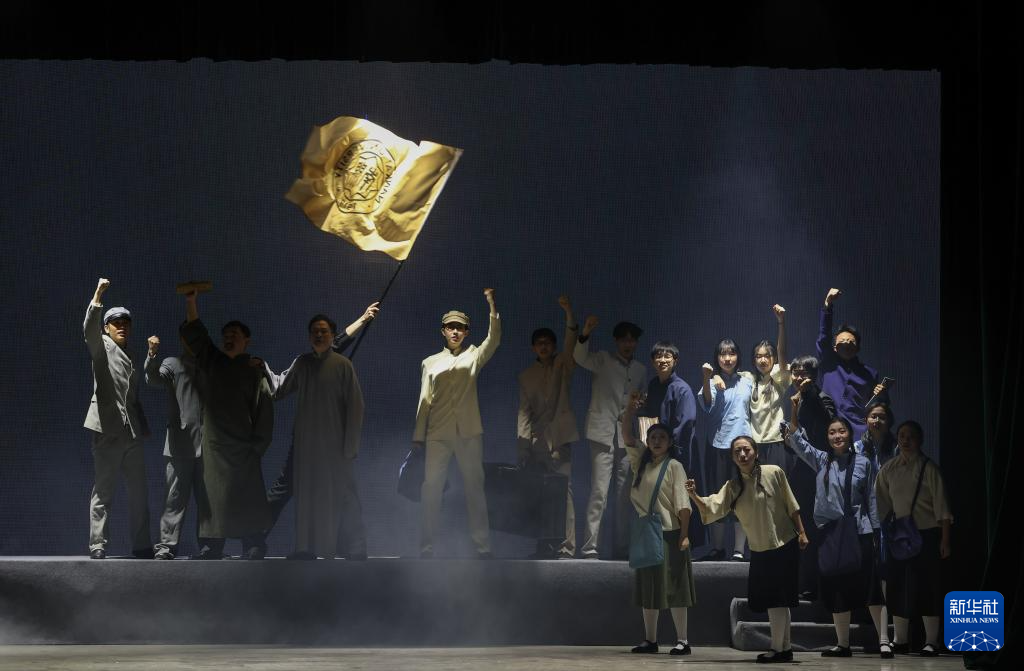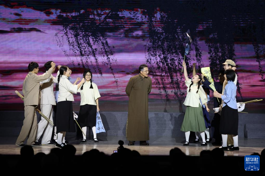 当日,2025天津戏剧节闭幕式在天津南开中学举行。天津人民艺术剧院的表演者携话剧《爱国三问》走进南开中学校园,师生在话剧表演中重温南开老校长张伯苓的“爱国三问”——你是中国人吗?你爱中国吗?你愿意中国好吗?