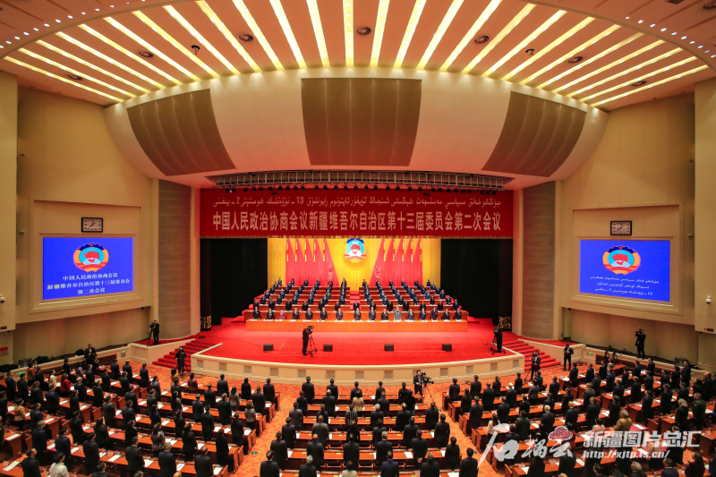 2月1日,中国人民政治协商会议新疆维吾尔自治区第十三届委员会第二次会议在新疆人民会堂闭幕。图为会议现场。石榴云/新疆日报记者 蔡增乐摄