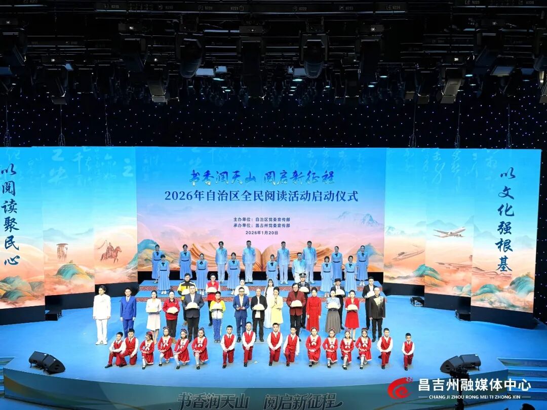 1月20日,“书香润天山阅启新征程”2026年自治区全民阅读活动启动仪式在昌吉举行。自治区党委宣传部常务副部长赵江涛出席并讲话,自治区妇联党组书记、副主席李灵慧,自治区团委副书记何甜,自治区人民政府副总督学何庆、福建援疆前方指挥部副总指挥长邱建彬依次发言,昌吉州党委常委、宣传部部长苏晓莉致辞。