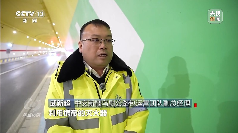 中交新疆乌尉公路包运营团队副总经理武新超:花了两分多钟赶到现场,交警同志和应急人员利用携带的灭火器,第一时间对火灾进行了控制,整个处置过程用时不到5分钟。