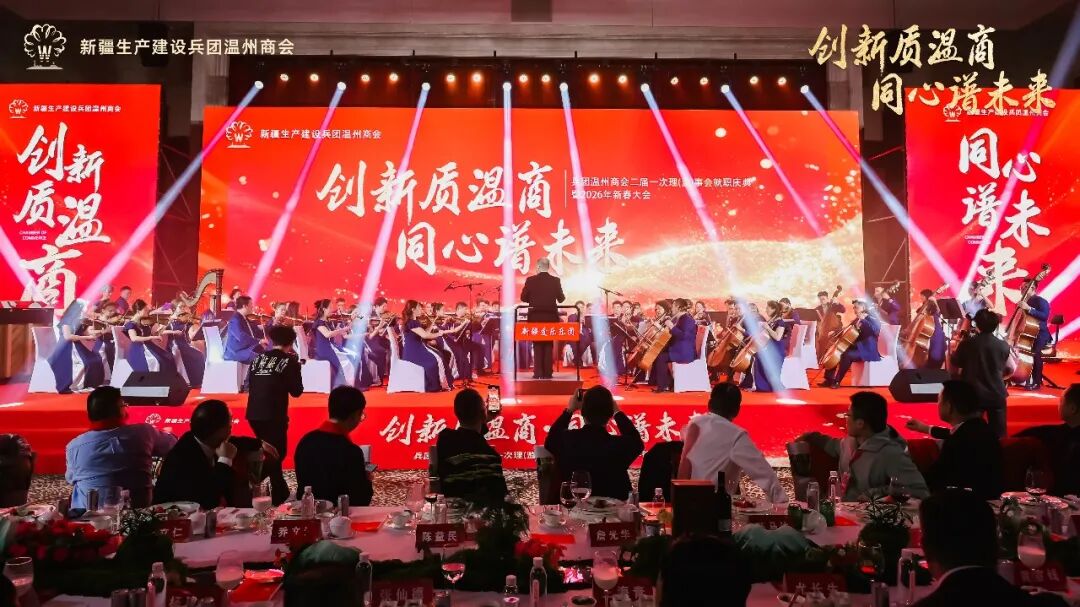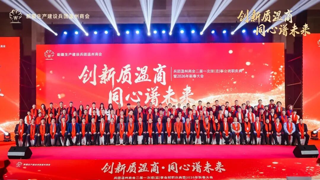 2026年1月26日,以“创新质温商,同心谱未来”为主题的新疆生产建设兵团温州商会第二届会员大会暨二届一次理(监)事会在新疆迎宾馆隆重举行。兵团温州商会理(监)事会班子成员、全体会员,新疆温州总商会企业家代表,地州温州商会会长、秘书长,新疆、兵团兄弟商会代表及新闻媒体等300余人齐聚现场,共话发展蓝图。