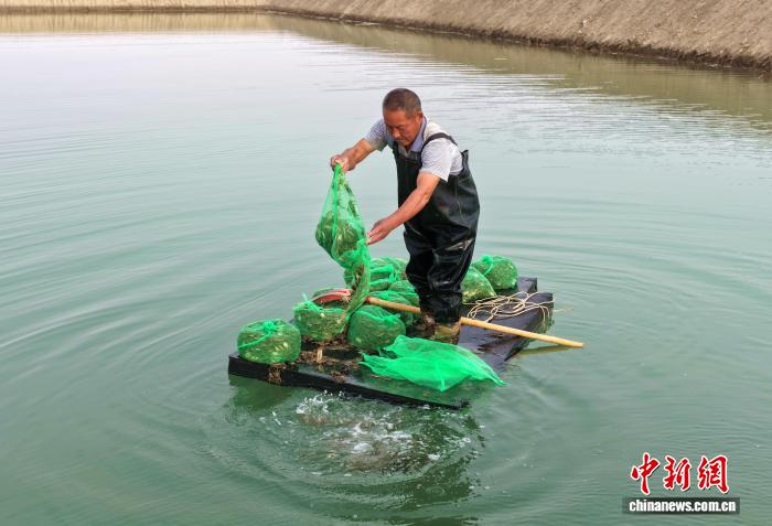 中新网乌鲁木齐3月18日电 随着天气转暖,新疆水产养殖迎来投苗时节。连日来,位于塔克拉玛干沙漠边缘的多个县市,正将从其他省份引进的蟹苗投放到养殖水域中,预计今年中秋节可集中上市。