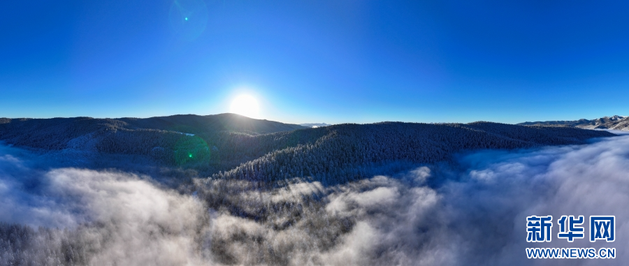 清晨雾气缭绕,明媚晨光照耀着冰雪世界(12月18日摄)。新华网发(刘东 摄)