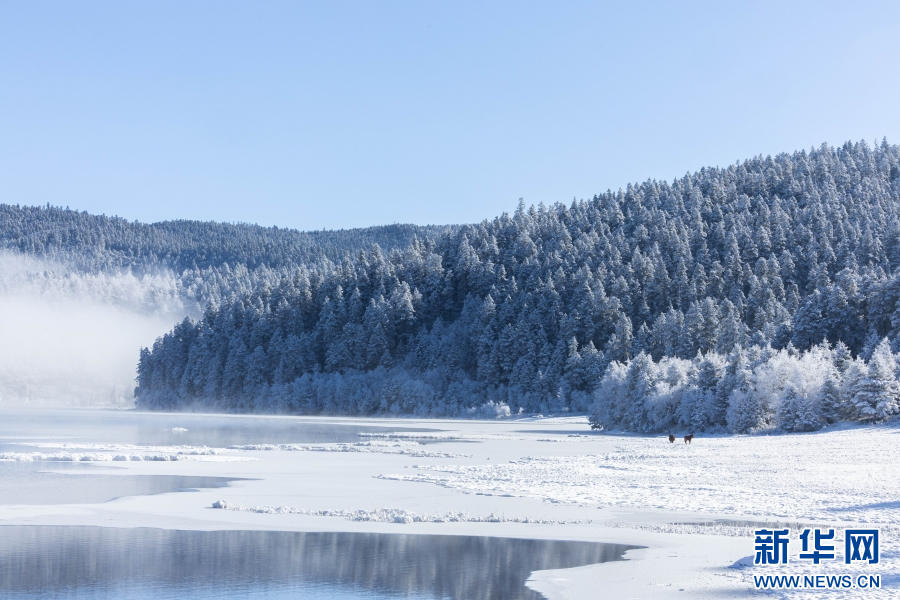 在属都湖、碧塔海等区域,雪后森林间,光线穿过挂满冰晶与积雪的枝桠,投下道道光束,林间雾气缭绕,展现出与往日氛围截然不同的静穆之美。