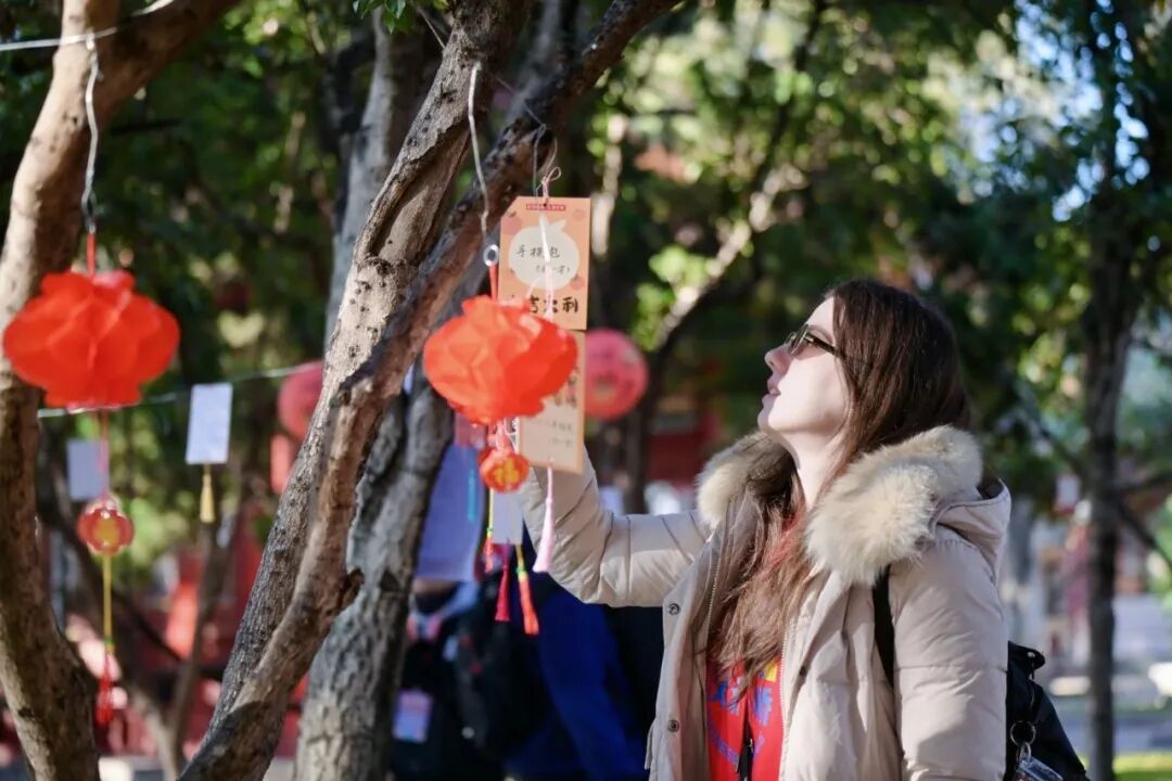 游园深处,年俗体验区早已热闹非凡。选手们化身“年俗体验官”,提笔写福画马,指尖翻飞间剪出灵动窗花、折出吉祥锦鲤,亲手编织中国结、体验小马刺绣,在糖画的甜香与漆扇的雅致中,沉浸式感受中国年的仪式感。猜灯谜专区里,选手们围着谜面凝神思索,不时用流利中文交流探讨,赢取奖券兑换礼品的喜悦,让冬日的公园暖意融融。人鸥互动的灵动、汉风吟诵的雅致、年俗体验的鲜活,共同勾勒出中外友人共庆新春的美好图景。