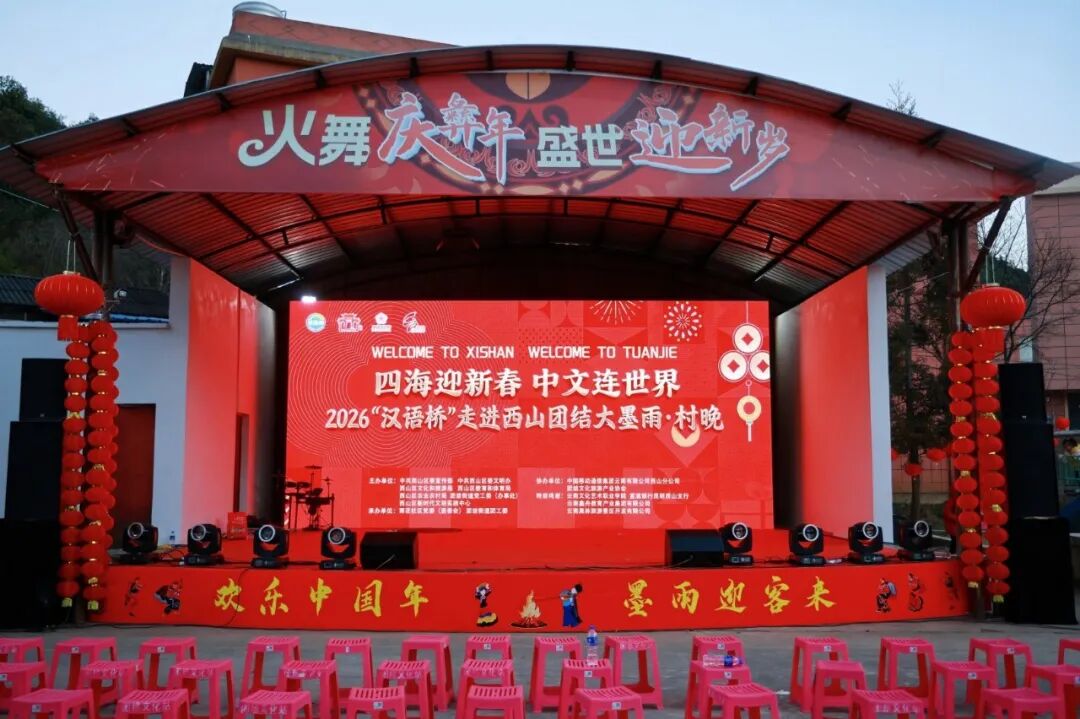 傍晚六点半,一场别开生面的“村晚”在欢腾的锣鼓声中拉开序幕,乡土舞台上星光熠熠,“汉语桥”选手们与村民携手献上了一场跨文化的视听盛宴。