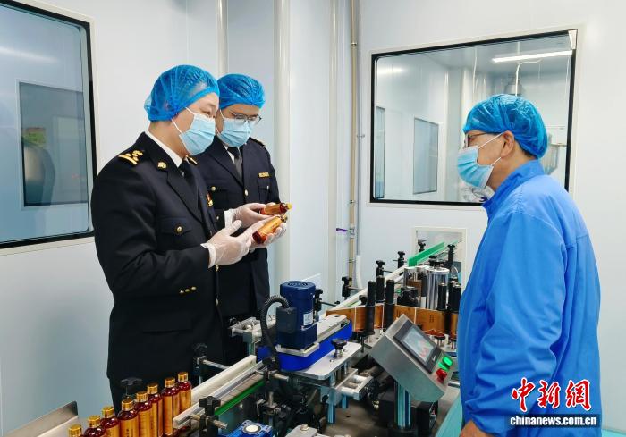 海关关员对出口当归精油进行检查。钱晓磊 摄