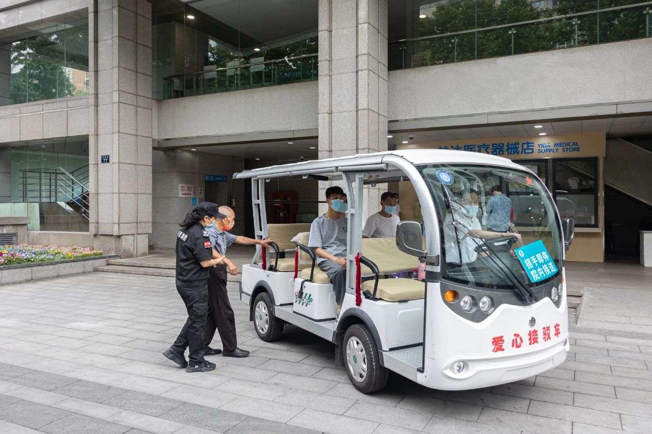 在入院通道上增设了就医、住院“临时下客点”,用于就医、住院患者临时下车,车辆即停即走。入住医院途中,设置了“爱心接驳车”,车辆在院区内循环接驳。离院道路上规划了出院“限时停靠点”,保障患者出院少走路、少等待。用于接出院患者离院的车辆限时停靠点目前正在施工,预计7月正式启用。