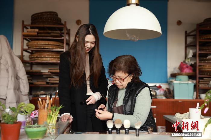 中新网湖州1月27日电(胡丰盛 孙杨洋)指尖拂过黑檀木刷柄,细光峰羊毫刷毛柔软如绒,螺钿纹饰在光线下流转着古韵微光——这支并非用于挥毫泼墨的“笔”,而是浙江湖州南浔善琏湖笔小镇推出的“笔未央”美妆笔。