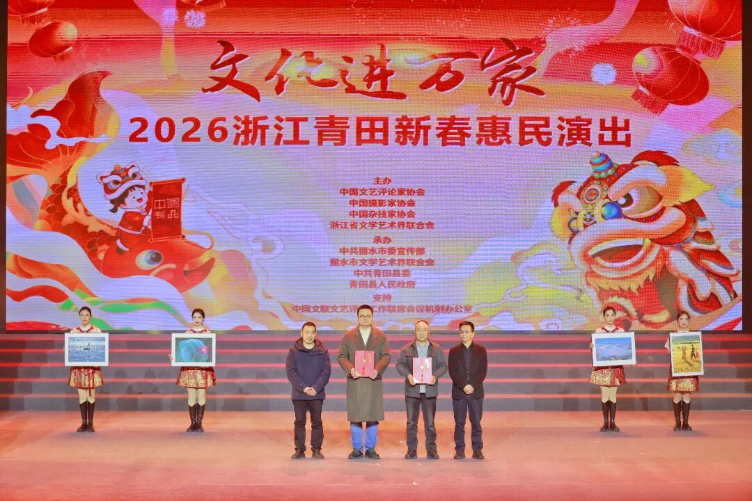 此次演出由中国文艺评论家协会、中国摄影家协会、中国杂技家协会、浙江省文学艺术界联合会主办,中共丽水市委宣传部、丽水市文学艺术界联合会、中共青田县委、青田县人民政府承办,中国文联文艺评论工作联席会议机制办公室支持,为中国文学艺术基金会中国文学艺术发展专项基金资助项目,不仅是国家级优质文艺资源向基层延伸、助力县域文化繁荣的生动体现,更是推动文艺为民、文艺惠民走深走实的暖心实践。