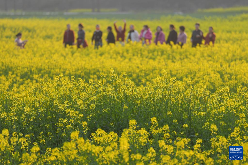 天气渐暖,位于富春江畔的浙江杭州桐庐县桐君街道梅蓉村千亩油菜花田进入盛开期,吸引不少游客前来观光游玩。