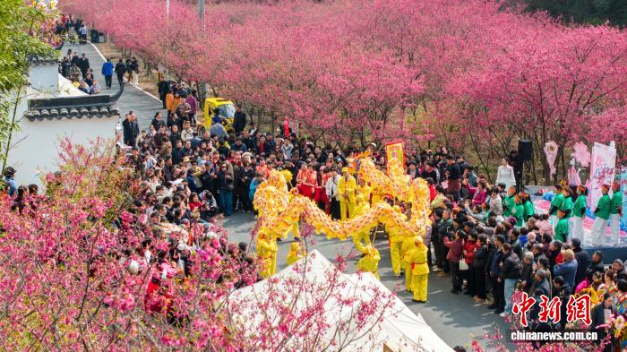 3月7日,杭州临安玲珑街道米积村开展民俗表演,吸引游客驻足观看。杨益灵 摄